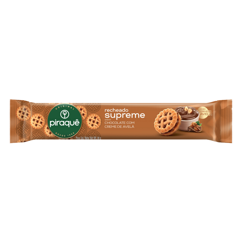 Biscoito Piraque 80g Chocolate com creme de avelã Supreme recheado