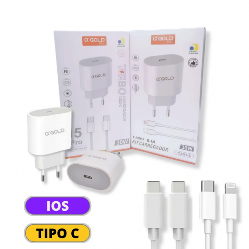 Carregador 30W PD Tipo C IOS Gold CA31-2 6.1A