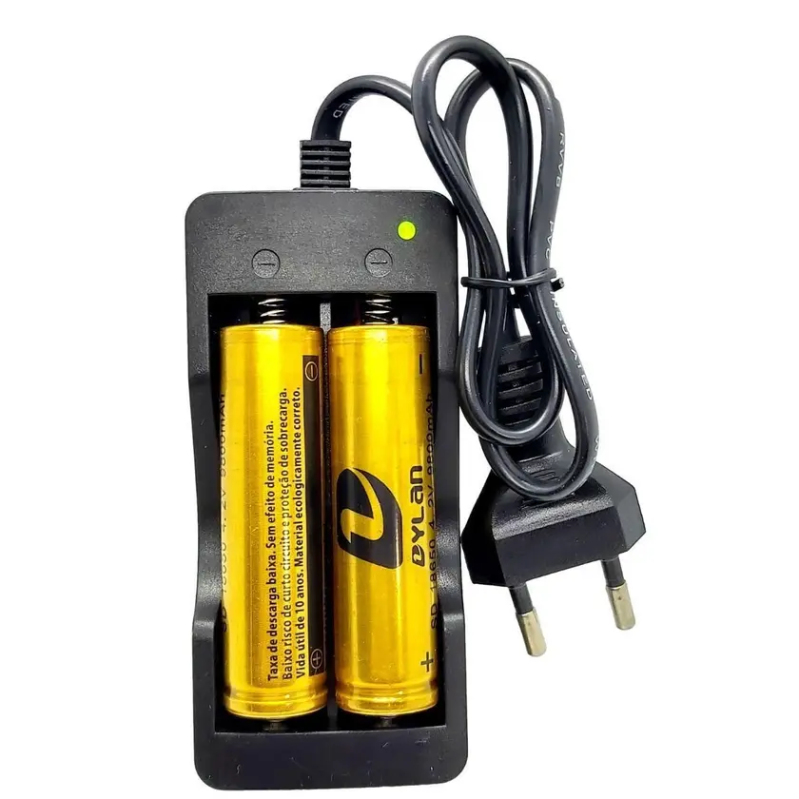 Carregador Duplo Bateria 18650 Lanterna Tática Bivolt LPJ-A02 110V