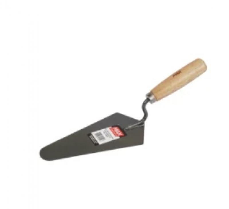Colher pedreiro 8 pol/ fabricado em aco especial, lamina for jada. solda continua robotizada, pintura epox eletrostatica a po prote extra contra oxidacao. cabo madeira envernizada.