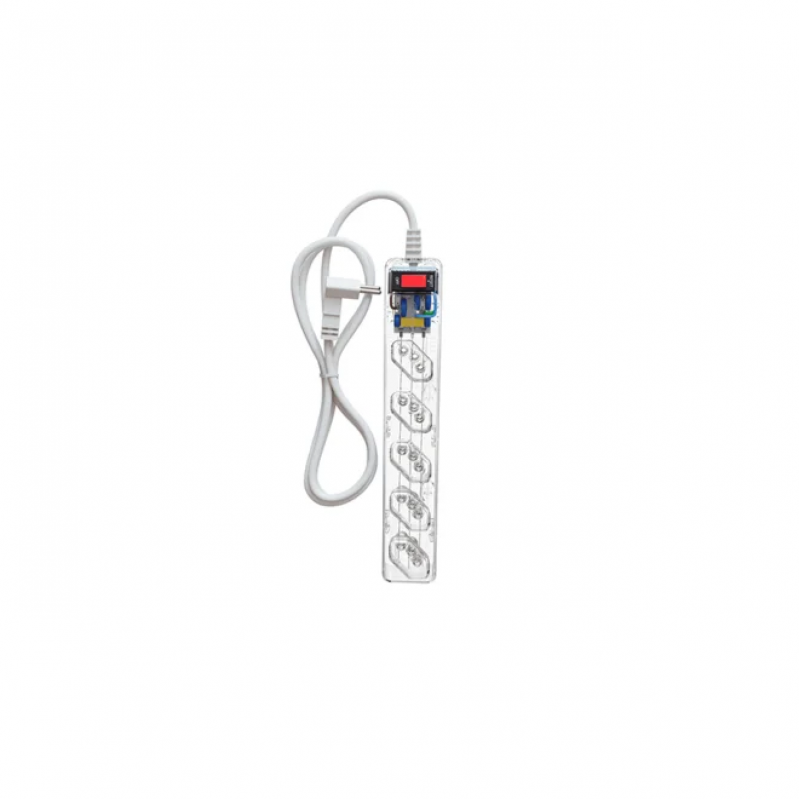 Transparente,com 5tomadas para conectar seus dispositivos e reduzir a quantidade de fios,tecnologia lcf,que protege seus eletronicos contra surtos eletricos.6anos de garantia.
