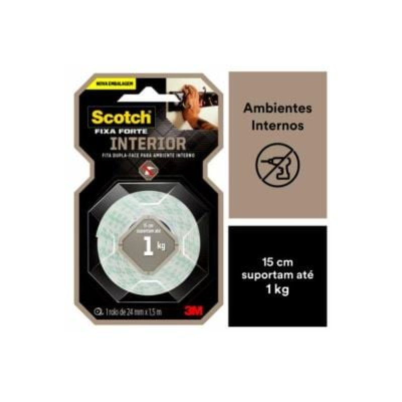 A Fita Dupla Face Scotch® Fixa Forte Interiores (Espuma) é a solução mais prática para fixar canaletas, porta-chaves, quadros, espelhos e peças de decoração, entre outros. Sua aplicação é fácil, evitando furos e sujeira.