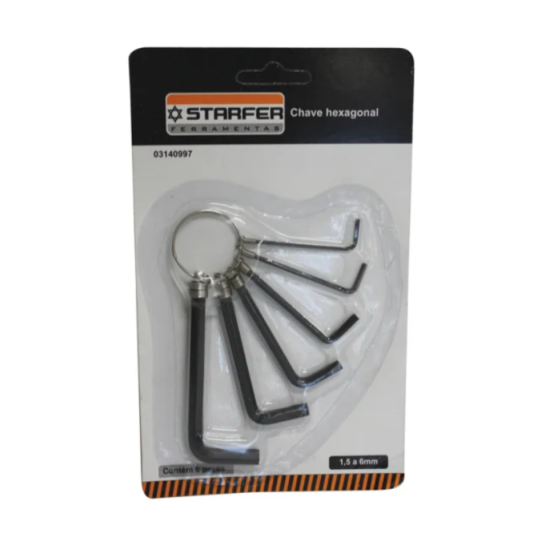 Jogo chaves Allen 6 peças Starfer 1,5 a 6mm