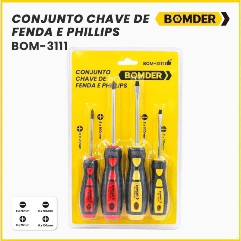 Kit chaves fenda philips 4 peças BOM-3111 BOMVINK