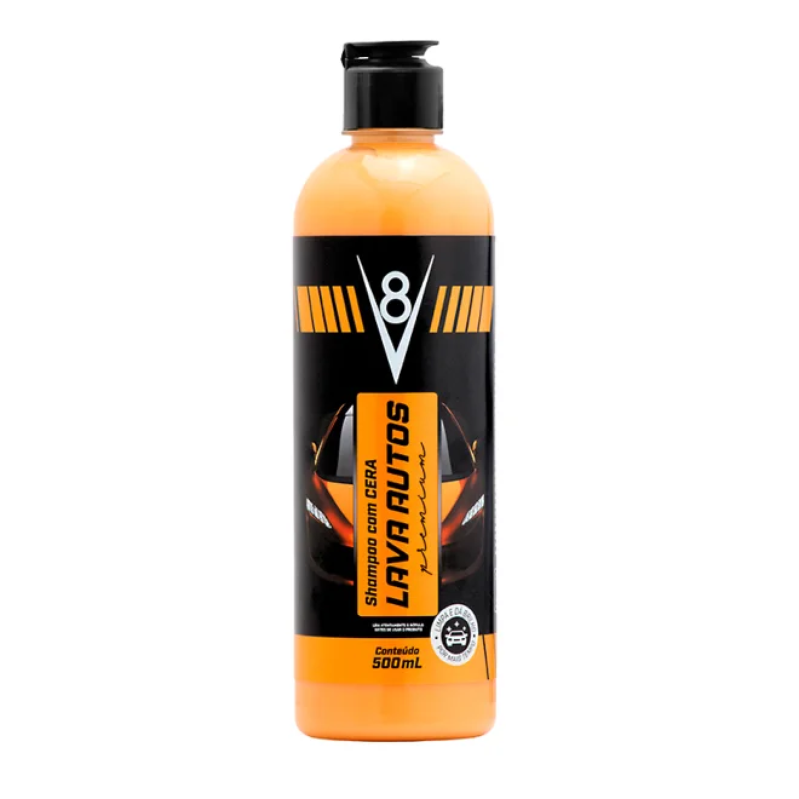 Shampoo para autos 2 em 1 v8 limpa e da brilho na pintura do seu automovel.aplicacao do produto deve ser efetuada na som bra para que nao danifique a pintura do carro.