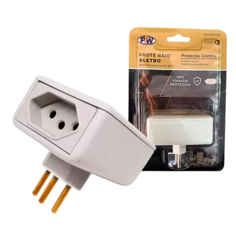 Proteraio eletro e o dispositivo dps que protege eletrodo- mesticos em geral,contra surtos,picos de tensao,sobrecarga eletrica e raios,pode conectar ate 2 aparelhos no mesmo disp