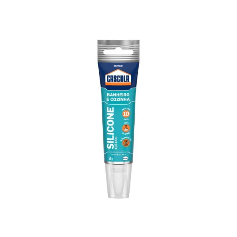100% silicone – Selante à base de borracha de silicone de cura acética para vedações duradouras e resistentes a mofo em ambientes úmidos, como banheiros e cozinhas.